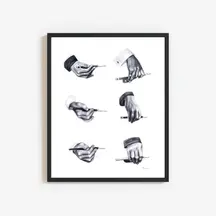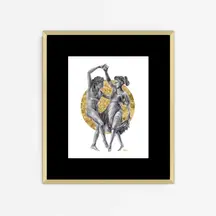 The giclée printing process provides higher image detail than traditional photographic printing. Using seven dye-based inks, Inkermezzo's giclée Prints offer vibrant color reproduction and enhanced image clarity on archival fine art paper. You can see each and every pen stroke! Prints are available in a range of sizes. The framing options include a thin black metal frame without mat or a gold metal frame with or without a 2” black matting. Framing includes a complimentary non-glare glass.